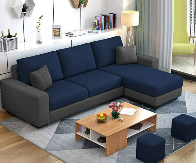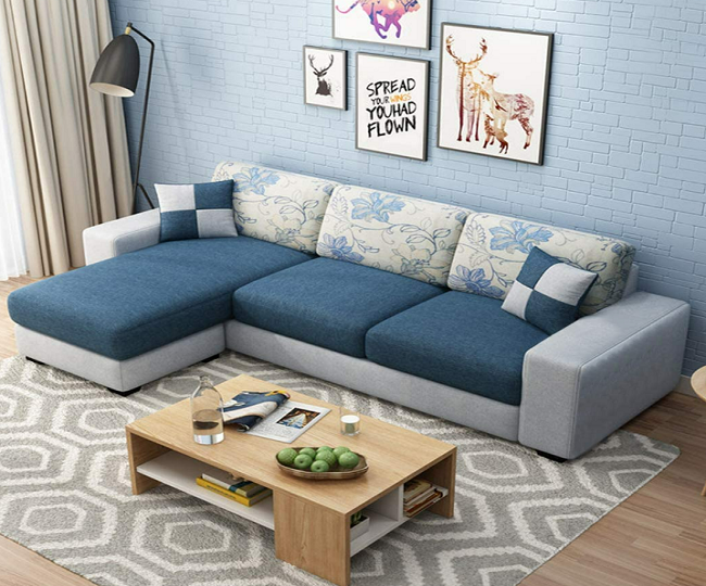 - 4 सीटर फैब्रिक एल शेप सोफा सेट