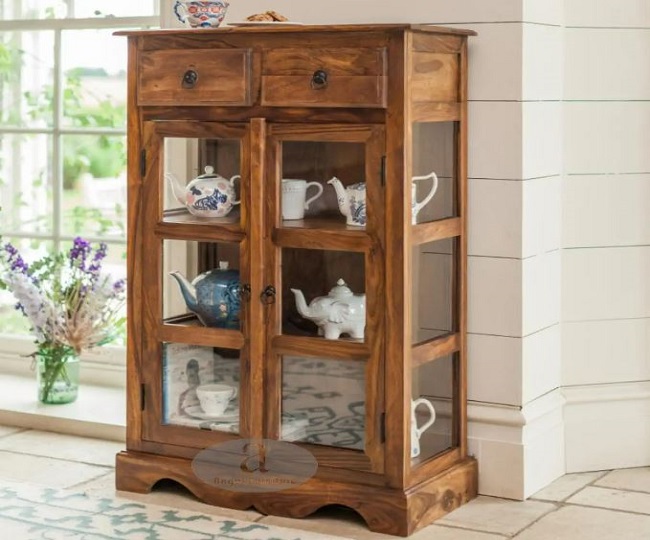 Angel Furniture लकड़ी से बना हुआ है और इसका हनी कलर है। इसमें आप बहुत सारा किचन का सामान रख सकते हैं। इसमें आपको ग्लास के दरवाजे मिलते हैं, जिससे इस glass crockery unit में रखा सामान देख सकते हैं। Angel Furniture crockery unit price: Rs 18299.