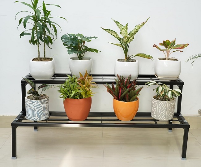 2 टायर Plant Stand पर आप अपने 6 से 8 पौधों को आसानी से रख सकते हैं। इसकी मजबूत डिजाइन ना गलता है और ना जंग लगता है। आपके बालकनी में कम स्पेस के लिए इसे आप चुन सकते हैं।