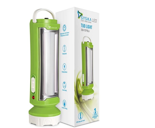 यह ट्रैवल फ्रेंडली SYSKA Rechargeable Lamp कम टॉर्च है, जो 12 से 15 घंटे चार्ज करने पर लैम्प लाइट पर 3 घंटे और टॉर्च लाइट पर 4 घंटे काम करता है।