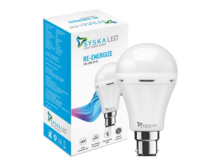 इसकी क्षमता 9 वाट है, जो काफी तेज लाइट देता है। इस SYSKA Rechargeable Bulb पर आपको 6 महीने की वारंटी भी मिलती है। यह एक नॉर्मल बल्ब जैसा ही दिखता है। SYSKA Emergency LED Bulb Price: Rs 419.