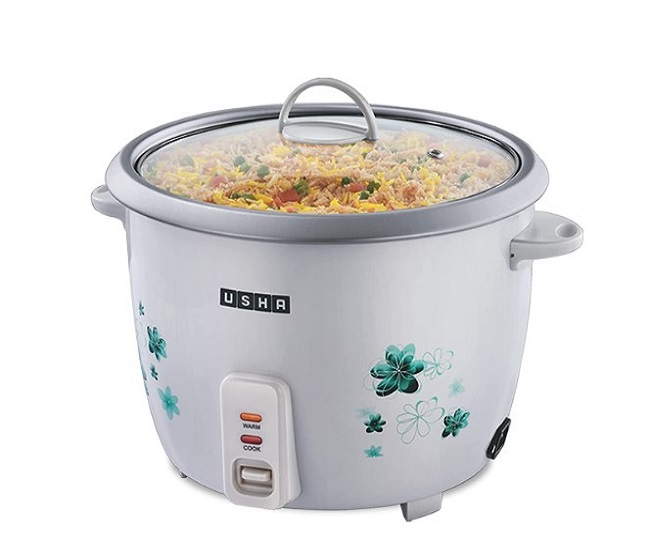 इसका एनोडाइज्ड एल्युमिनियम कुकिंग पैन है और ग्लास लिड है। ड्राई बॉईल प्रोटेक्शन के साथ तापमान कंट्रोल के लिए इस Electric Rice Cooker में ऑटो कट-ऑफ थर्मोस्टेट का फंक्शन मिलता है। Usha Electric Rice Cooker Price: Rs 2149.