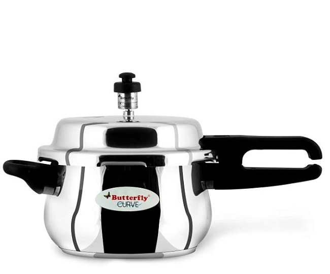 Butterfly Pressure Cooker की क्षमता 3 लीटर है। इसमें खाना कम गैस की खपत में बनता है। यह कुकर स्टील से बना हुआ है। यह Indian Cookers यूनिडायरेक्शनल नोटेशन के साथ आता है और इसकी ग्रीप अच्छी है। Butterfly pressure cooker price: Rs 1549.