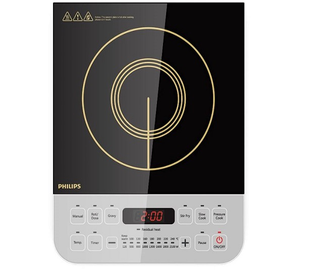 यह Philips Induction Stove 8 किलोग्राम तक वजन ले सकता है। इसको बनाने के लिए ग्लास मैटेरियल का इस्तेमाल किया है। यह 2100 वाट का दमदार Induction Cooktops है। इसे इंडियन खाने के हिसाब से प्रोग्राम किया है। इस इंडक्शन कुकटॉप में ऑटो शट ऑफ का फीचर मिलता है। Philips Induction Cooktop Price: Rs 3399.