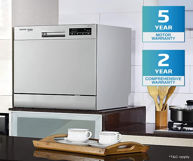 इसमें 8 प्लेस सेटिंग ऑप्शन दिया गया है। इसकी मदद से आप अत्यधिक गंदी क्रॉकरी को शक्तिशाली ऑप्शन के प्रयोग से बेहतर और स्वच्छ सफाई कर सकते हैं। पानी और बिजली की बचत में इसका प्रयोग सही है। Dishwasher के इस्तेमाल से आप एक बेहतर धुलाई पा सकते है। साथ ही सुखाने की झंझट से भी निजात पा सकते हैं। Voltas Beko Dishwasher Price: Rs. 17,490.