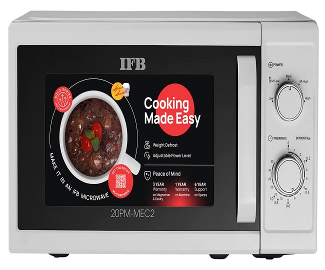 इसमें एंटी बैक्टीरियल कैविटी, ऑटो डिफ्रॉस्ट, ओवरहीटिंग प्रोटेक्शन और टाइमर विकल्प भी दिया गया है। IFB Microwave Oven Price: Rs 5,920