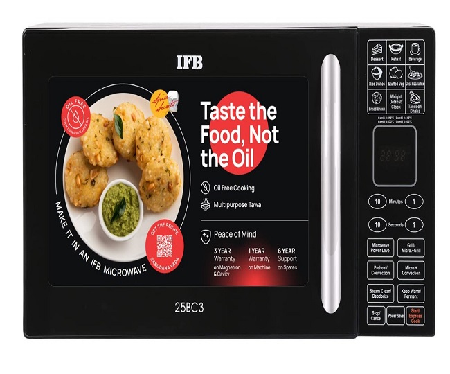 आईएफबी 25 लीटर का कन्वेक्शन माइक्रोवेव ओवन टच कीपैड के साथ, इसमें एक स्टार्टर किट भी मिलता है। 24 ऑटो कुक मैन्यू आईएफबी माइक्रोवेव में दिए गए हैं। इसी तरह Microwave Oven Price in India में ग्रिलिंग, रीहीटिंग, डीफ्रोस्टिंग और खाना पकाने के साथ-साथ स्टोरेज के लिए इस्तेमाल किया जा सकता है।