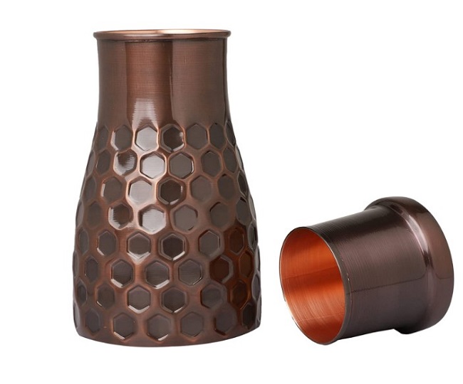 - AAYUVEDA® Pure Copper Antique Honeycomb Bedroom Water Bottle