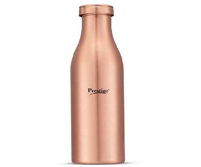 यह Best Copper Bottle शुद्ध तांबे से बनी है। वहीं इसका सिलिकॉन सील लीक प्रूफ डिज़ाइन है। यह बोतल एक लीटर की कैपेसिटी के साथ आती है। Prestige Water Bottle Copper Price: Rs 799.