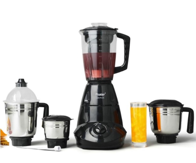 ओवरलोड प्रोटेक्टर मिक्सर मशीन को शॉर्ट सर्किट से बचाता है। यह 3 स्टेनलेस स्टील जार, ब्लेड के साथ 1.5 लीटर गीला जार, ब्लेड के साथ 1 लीटर सूखा जार और ब्लेड के साथ 300 एमएल चटनी जार और ब्लेड के साथ 1 ट्रांसपेरेंट जूसर जार के साथ आता है। Prestige Juicer Mixer Grinder Price: Rs 3199.
