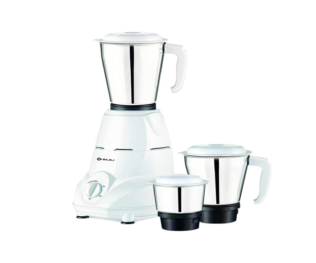 इस Bajaj Mixer Grinder की क्षमता 500 वाट है और यह 3 जार व न्यूट्री प्रो फीचर्स के साथ पेश किया जाता है। इस मिक्सर ग्रिंडर को स्टेनलेस स्टील, एबीएस प्लास्टिक बॉडी के साथ बनाया गया है और मेमोटंरी ऑपरेशन के लिए इंचर के साथ 3 स्पीड कंट्रोल के साथ पेश किया जाता है। Bajaj Mixer Grinder Price: Rs 2,299.