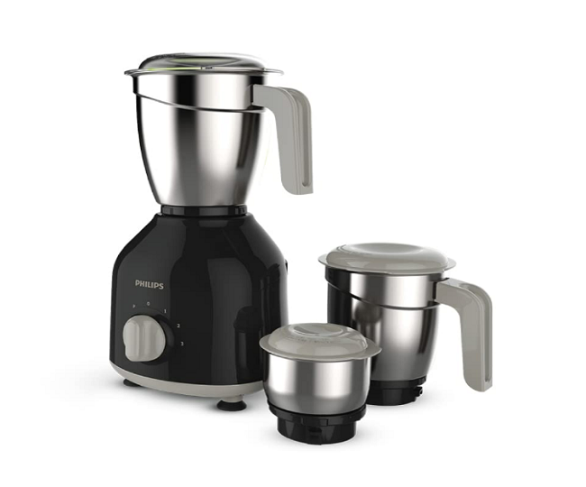 इस Philips Mixer Grinder की क्षमता 750 वाट है और इसे 3 स्पीड कंट्रोल और पल्स फ़ंक्शन के साथ 3 स्टेनलेस स्टील म्लीटपरपज जार के साथ पेश किया जाता है। यह मिक्सर ग्रिंडर कठोर सामग्री, मसाला, चटनी, शेक और प्यूरी के लिए विशेष ब्लेड के साथ आता है। Mixer Grinder Philips Price: Rs 3,400.