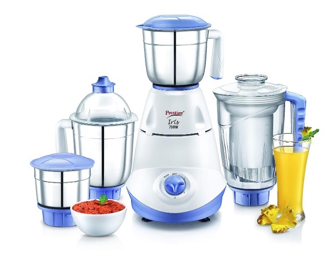 इस 750-Watt Mixer Grinder के लिक प्रूफ जार है, जो आसानी से मिक्सिंग, ग्राइंडिंग, चॉपिंग, ग्रेटिंग, स्लाइसिंग कर सकते हैं। यह 750 वाट की पॉवरफुल मोटर के साथ आता है। Prestige Mixer Grinder Price: Rs 3119.