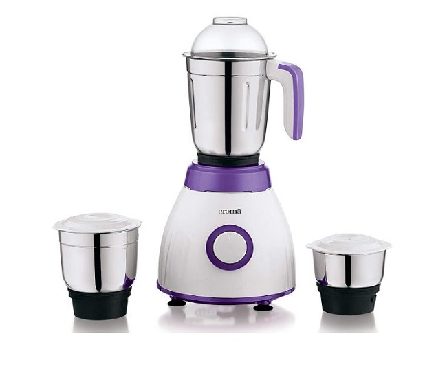 पर्पल कलर का यह Croma Grinder Mixer यूज होने पर कम शोर करता है। इसकी स्टेनलेस स्टील की ब्लेड है, जो 500 वाट की पॉवरफुल मोटर के साथ आता है। इस Mixer Juicer Grinder में आपको वैरिएबल स्पीड कंट्रोल मिलती है, जिसको आप अपने हिसाब से एडजस्ट कर सकते हैं। Croma Mixer Grinder Juicer Price: Rs 7379.