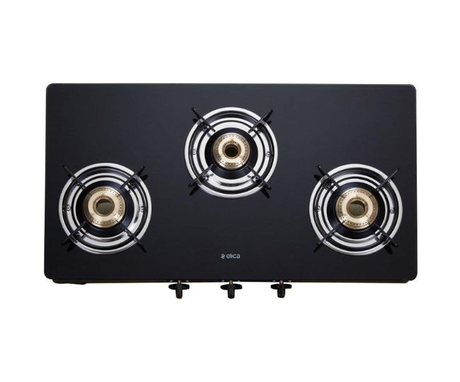 1. Elica Vetro Glass Top 3 Burner Gas Stove