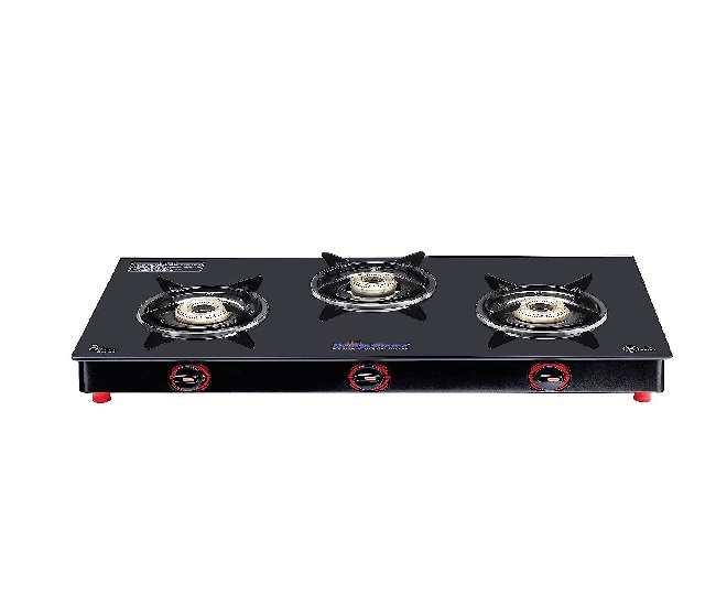 4. SURYA FLAME Glass Top Gas Stove 3 Burner