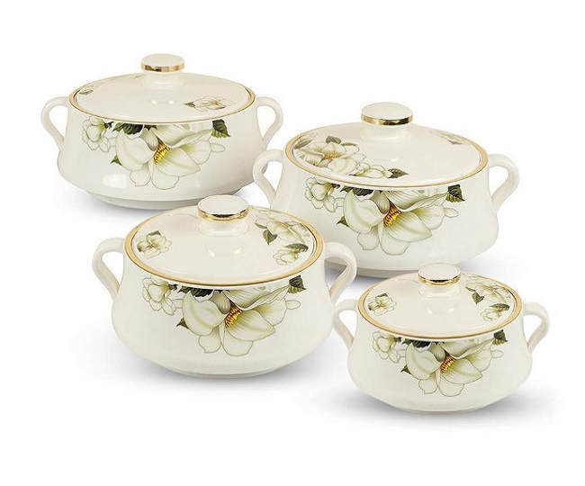 इस Casserole Set में आपको 500 ml, 1000 ml, 1500 ml, 2000 ml साइज के कैसरोल मिलते हैं। इस सेट के हॉट-पॉट नॉब को विशेष रूप से डिज़ाइन किया गया है। GALOOF Casserole Price: Rs 1829.
