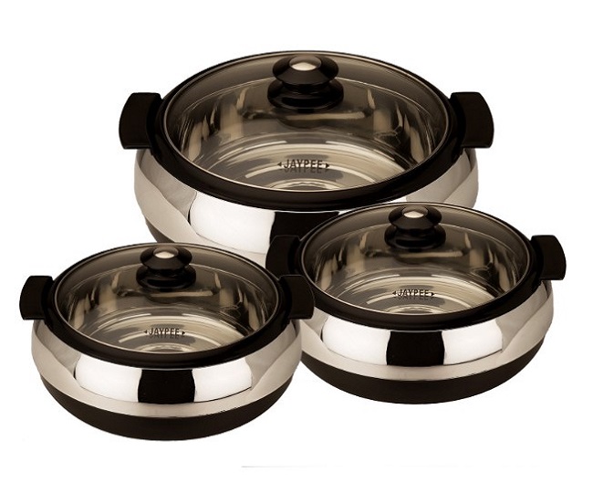 यह सेट अलग-अलग कैपेसिटी के तीन Casserole For Roti के साथ आता है। इसको आप इंडक्शन या ओवन में भी यूज कर सकते हैं। इन कैसरोल के साथ आपको ग्लास की लिड मिलती है। Vinod Casserole Price: Rs 1699.
