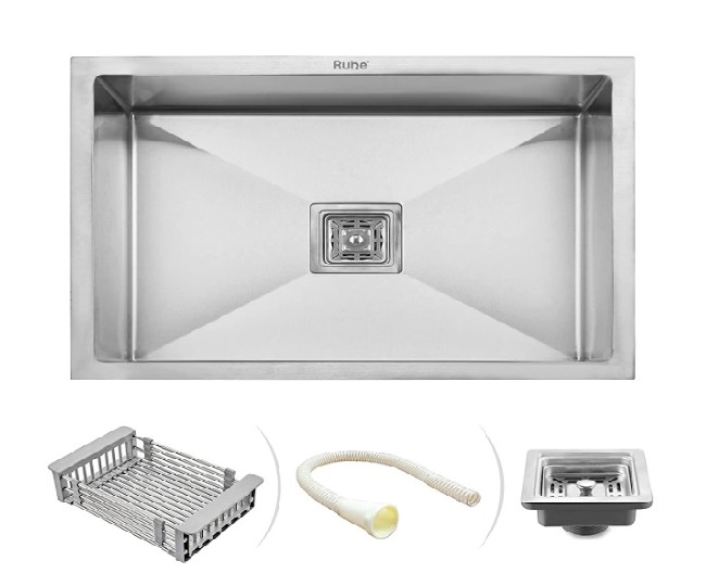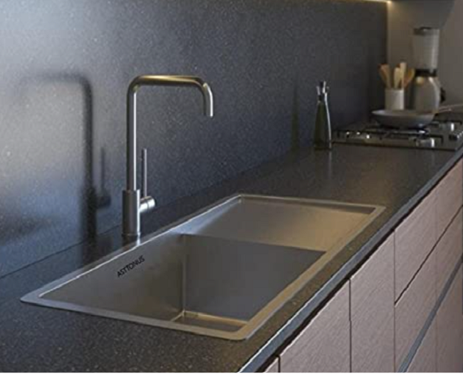 इस स्टेनलेस स्टील के Kitchen Sink Design में साटन इंटरनेशनल ब्रश फ़िनिश दी हुई है। यह किचन सिंक, फ्रूट बास्केट, कपलिंग सेट और ड्रेनेज पाइप के साथ आता है। इस पर आपको 7 साल की वारंटी मिलती है। ASTTONUS Kitchen Sink Price: Rs 6999.