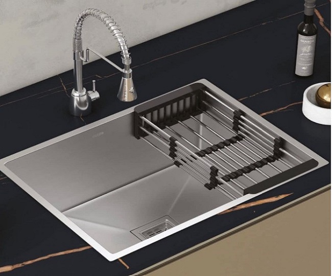 यह स्टाइलिश डिज़ाइन वाला किचन सिंक बहुत ही सुंदर है। इस पर मैट फिनिश दी हुई है, जो किचन को मॉडर्न और स्मार्ट लुक देता है। यह किचन सिंक डेंट-रेसिस्टेंट हाई ग्रेड स्टेनलेस स्टील 1.2 मिमी मोटी लेयर के साथ आता है।