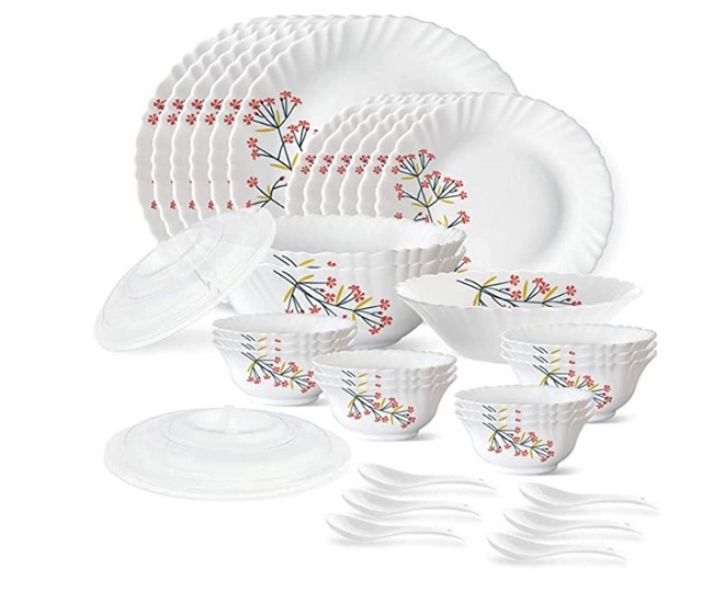 यह Bone China Dinner Set काफी ड्यूरेबल और मजबूत है। यह बोन और ऐश फ्री डिनर सेट है। रोजाना इस्तेमाल के लिए यह डिनर सेट बहुत ही बढ़िया है। Larah by Borosil Dinner Set Price: Rs 2049.
