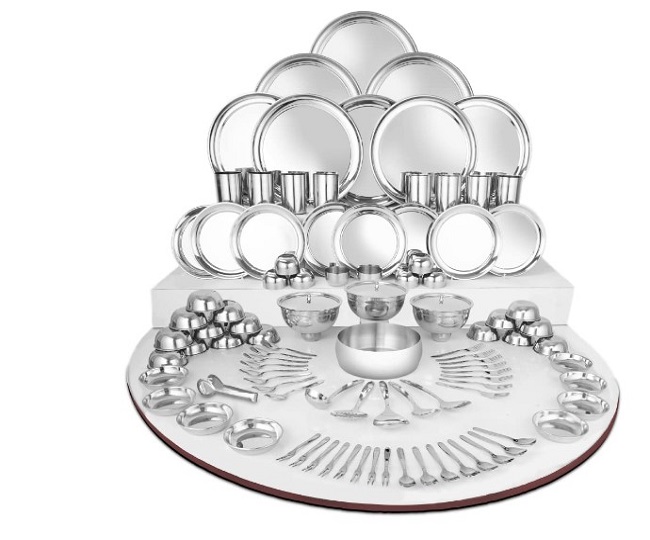 यह स्टेनलेस स्टील का डिनर सेट बहुत ही बढ़िया है। इस Dinner Set Online की क्वालिटी बहुत ही मजबूत है। यह कई बार इस्तेमाल होने के बाद भी पहले जैसा बेदाग और चमकदार रहता है।