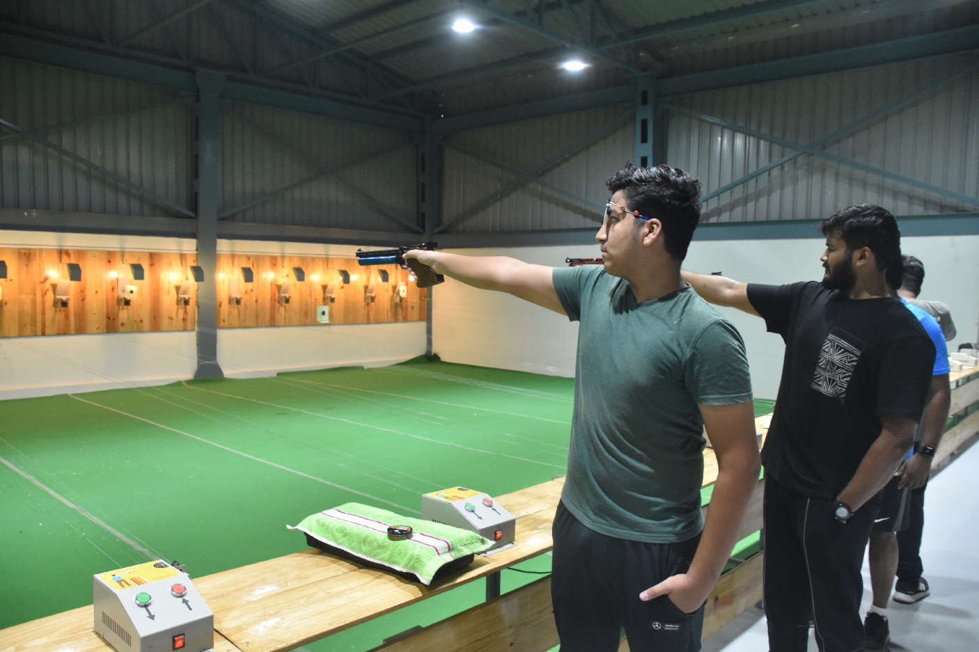 मिनी स्पोर्ट्स काम्प्लेक्स में शूटिंग का अभ्सास करते खिलाड़ी। जागरण