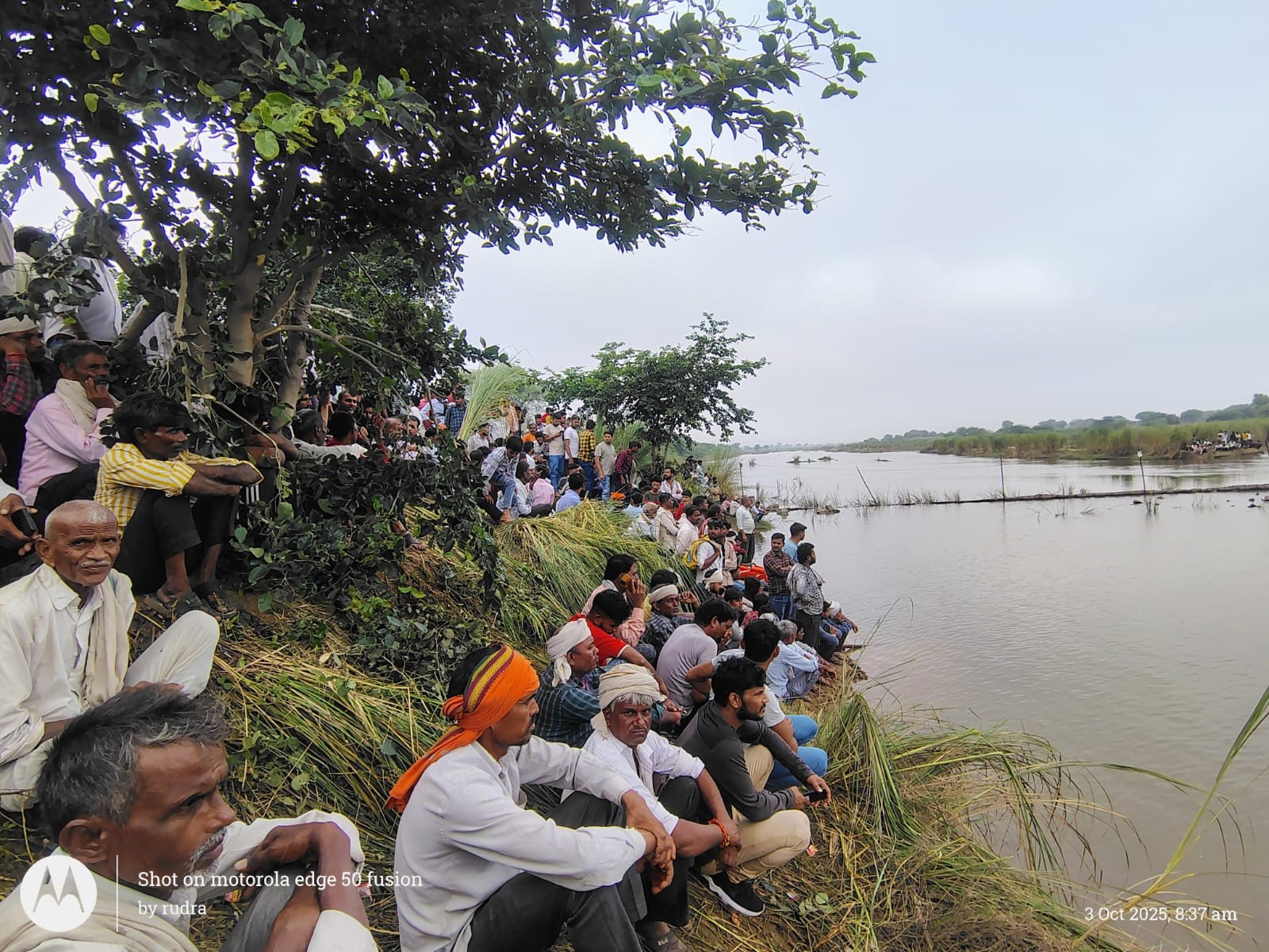 उटंगन नदी किनारे मौजूद लापता लोगों के स्वजन व ग्रामीण। जागरण