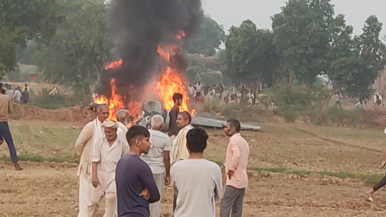 आगरा में वायुसेना का मिग-29 क्रैश, खेत में गिरे विमान में लगी आग; पायलट और को-पायलट सुरक्षित, देखें तस्वीरें