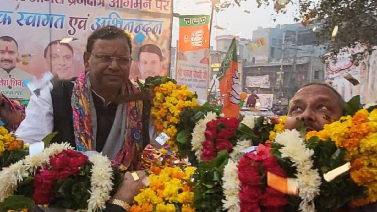 धाकरान चौराहे पर भाजपा प्रदेश अध्यक्ष का स्वागत करते एमएलसी विजय शिवहरे। सौजन्य स्वयं