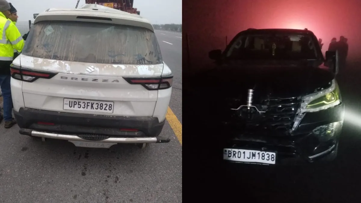 आगरा-लखनऊ एक्सप्रेसवे पर कोहरे में हादसा: चार गाड़ियां टकराईं, बाल-बाल बच गए कार सवार