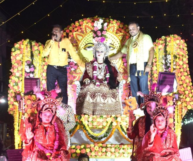 श्रद्धालुओं ने की पुष्पवर्षा, उतारी आरती