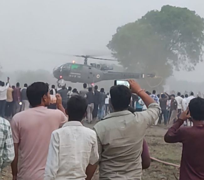 पैराशूट नीचे उतरते समय खेत से पेड़ों की ओर चला गया। तब तक आसपास के लोग वहां पहुंच गए। वीडियो में लोग बाेल रहे हैं बच गयो.. बच गयो.. फौजी। यह बोलते हुए वे भागकर पैराशूट की ओर पहुंच जाते हैं और विंग कमांडर की मदद करते हैं।
