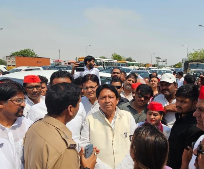 गभाना टोल प्लाजा पर सपा सांसद रामजीलाल सुमन के काफिला को रोकती अलीगढ़ व बुलंदशहर पुलिस