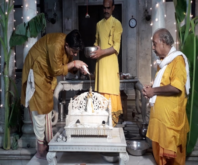 सप्तदेवालयों में शामिल ठा. राधारमणलाल जू के श्रीविग्रह का बुधवार की सुबह 9 बजे पुष्पार्चन शुरू हुआ। इसके बाद पंचामृत से महाभिषेक। दूध, दही, घृत, शर्करा, बूरा, शहर व जड़ी बूटियों से ठाकुरजी का करीब दो घंटे तक सेवायतों ने महाभिषेक किया जाएगा। महाभिषेक के दौरान लाढ़ले राधारमण के दर्शन आनलाइन फेसबुक और यू-ट्यूब पर करवाए जा रहे हैं। कुछ यही नजारा राधादामोदर मंदिर और शाहजी मंदिर में रहा। यहां भी दिन में ठाकुरजी का महाभिषेक कर श्रीकृष्ण जन्मोत्सव मनाया गया।