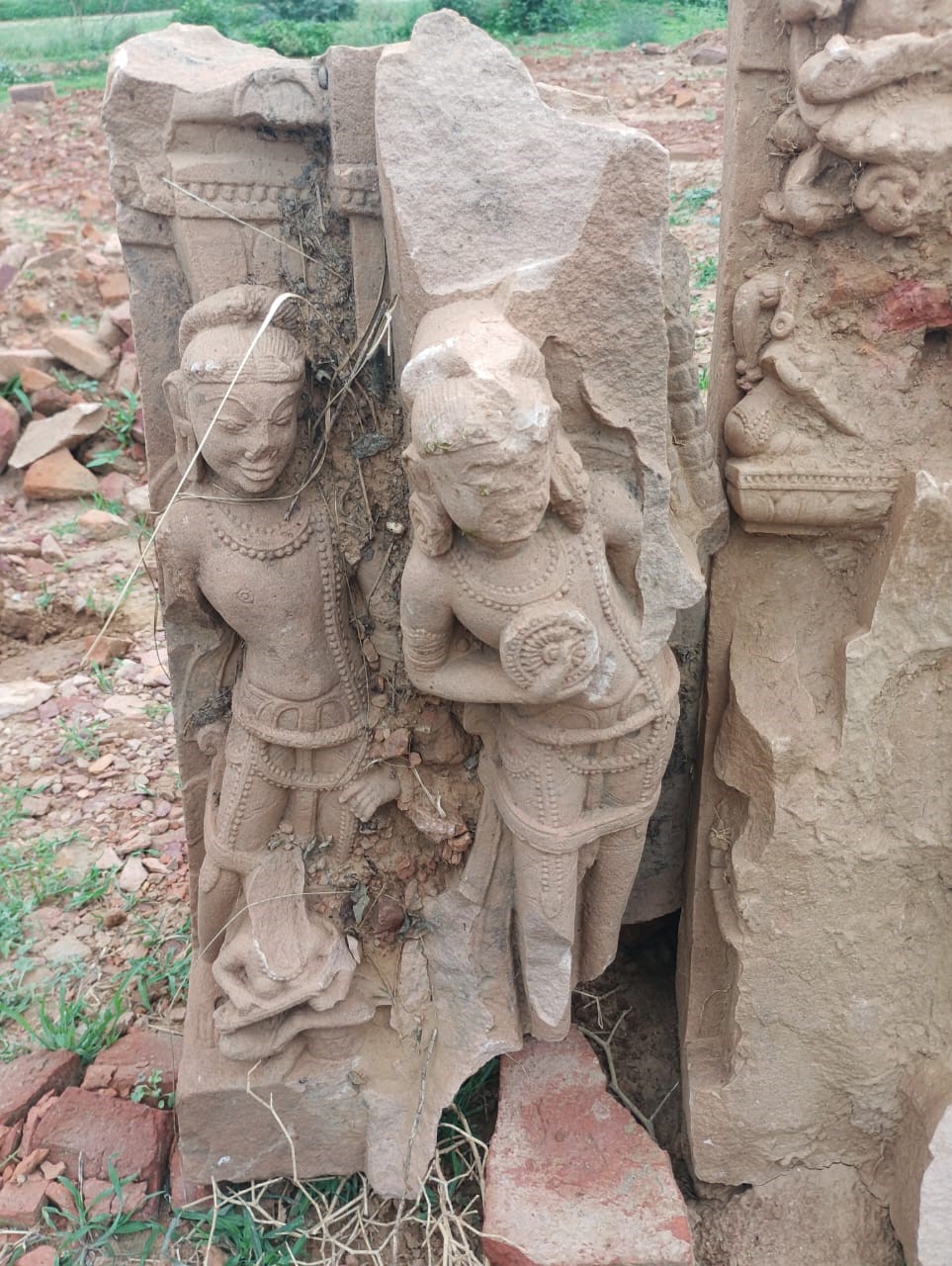 खोदाई में निकली परिचरों की मूर्ति। इंटरनेट मीडिया