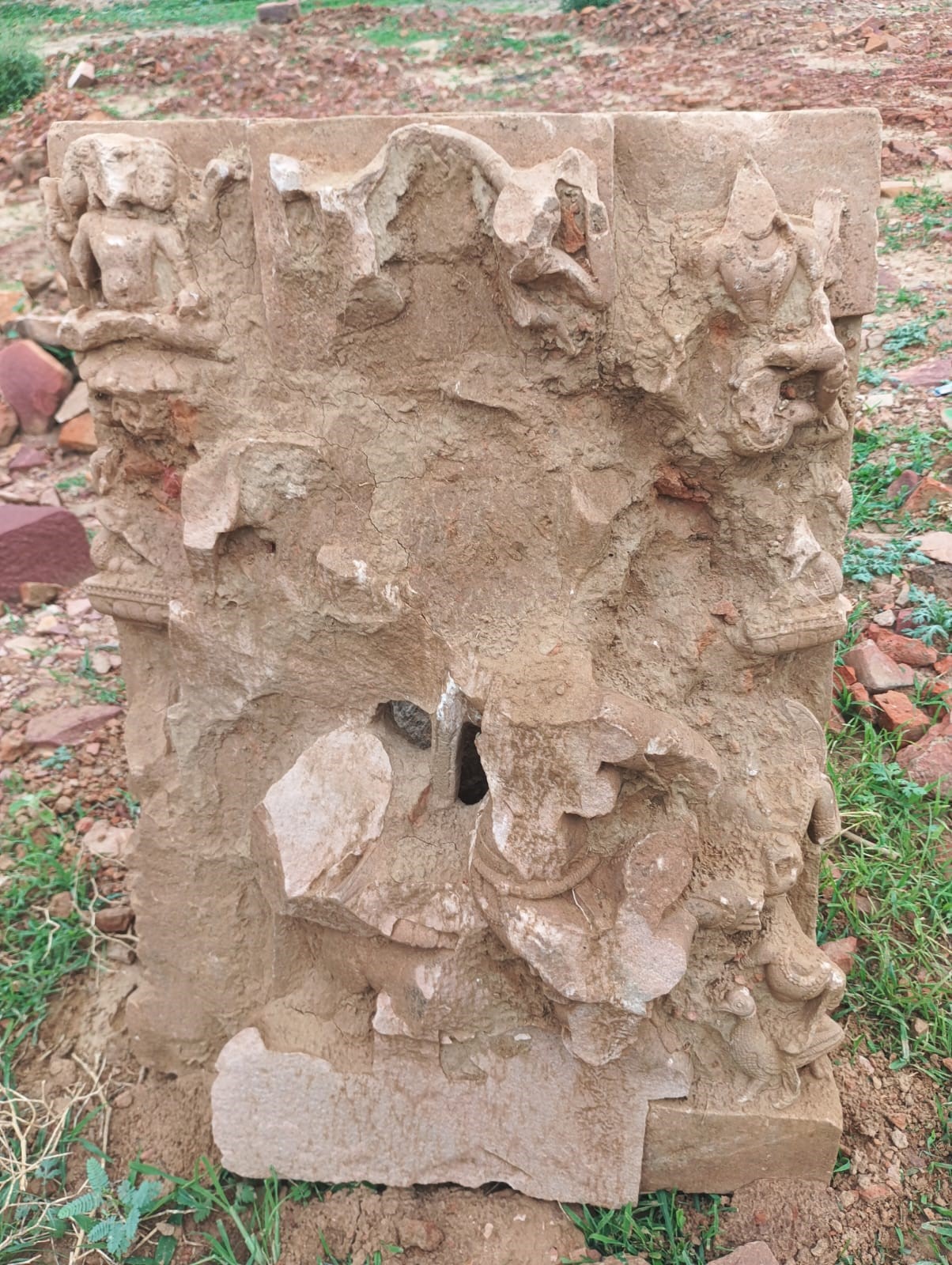 एक मूर्ति गरुड़ (मानव स्वरूप) के ऊपर बैठे हुए भगवान विष्णु की मानी जा रही है। इसमें एक तरफ ब्रह्मा और दूसरी ओर भगवान शिव भी बने हुए हैं। यहां चबूतरे पर रखी मूर्ति नवीं-10वीं शताब्दी की कुबेर की मानी जा रही है। मूर्ति के एक हाथ में धन की पोटली और दूसरे में मदिरा का गिलास है।