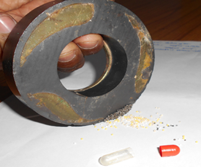 महिलाओं में खून की कमी (एनीमिया) आम समस्या है। अक्सर, चिकित्सक उन्हें आयरन कैप्सूल लेने की सलाह देते हैं। बाजार में 10 रुपये में बिक रहा आयरन का फीफॉल-जेड नामक कैप्सूल चुंबक से चिपकने लगता है। महिला चिकित्सक डॉ. शैलजा का कहना है कि उन्होंने कभी ऐसी दवा नहीं देखी जो चुंबक से चिपकती हो।दरअसल आयरन कैप्सूल में आयरन की इतनी मात्रा होनी चाहिए कि वह चुंबक के साथ न चिपके जबकि बाजार में बिक रही दवा चुंबक के संपर्क में आते ही चिपकने लगती है।