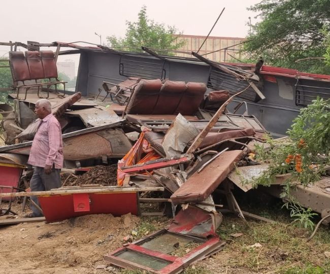 हादसा इतना जबरदस्त था कि बस के परखच्चे उड़ गए हैं।