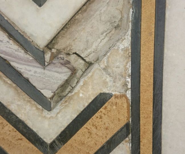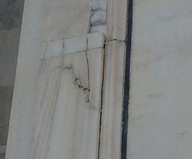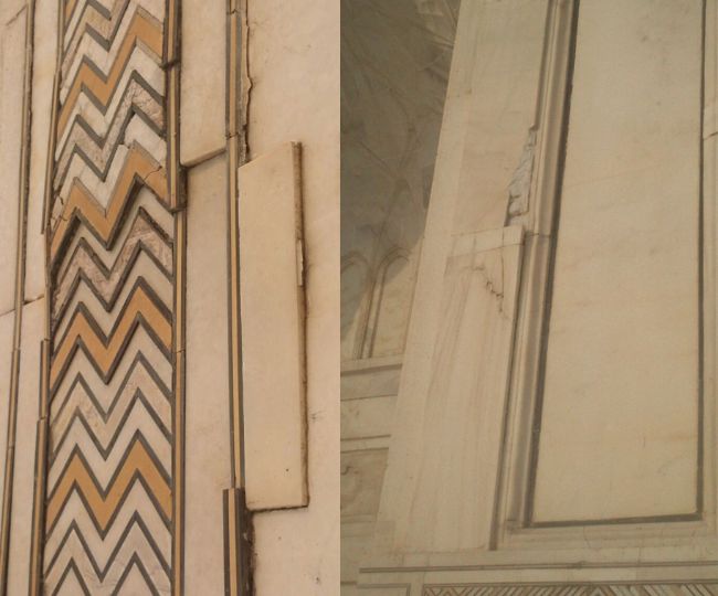 क्लैंप फूलने से ताजमहल में इस तरह से कुछ जगह पत्थर चटके हैं