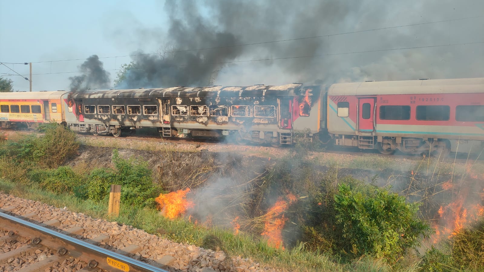 ड्राइवर ने इमरजेंसी ब्रेक लगा ट्रेन को रोका। रेलवे कंट्रोल रूम को आग लगने की जानकारी दी। ट्रेन के रुकते ही यात्रियों ने बोगी से कूदकर अपनी जान बचाई। तब तक दोनों बोगी लपटों में पूरी तरह से घिर चुकी थीं। उन्हें ट्रेन के अन्य डिब्बों से अलग करने का प्रयास आरंभ कर दिया गया। इस बीच फायर ब्रिग्रेड आग को काबू करने पहुंच गईं। दोनों बोगी में लगी आग को बुझाने का प्रयास जारी है।