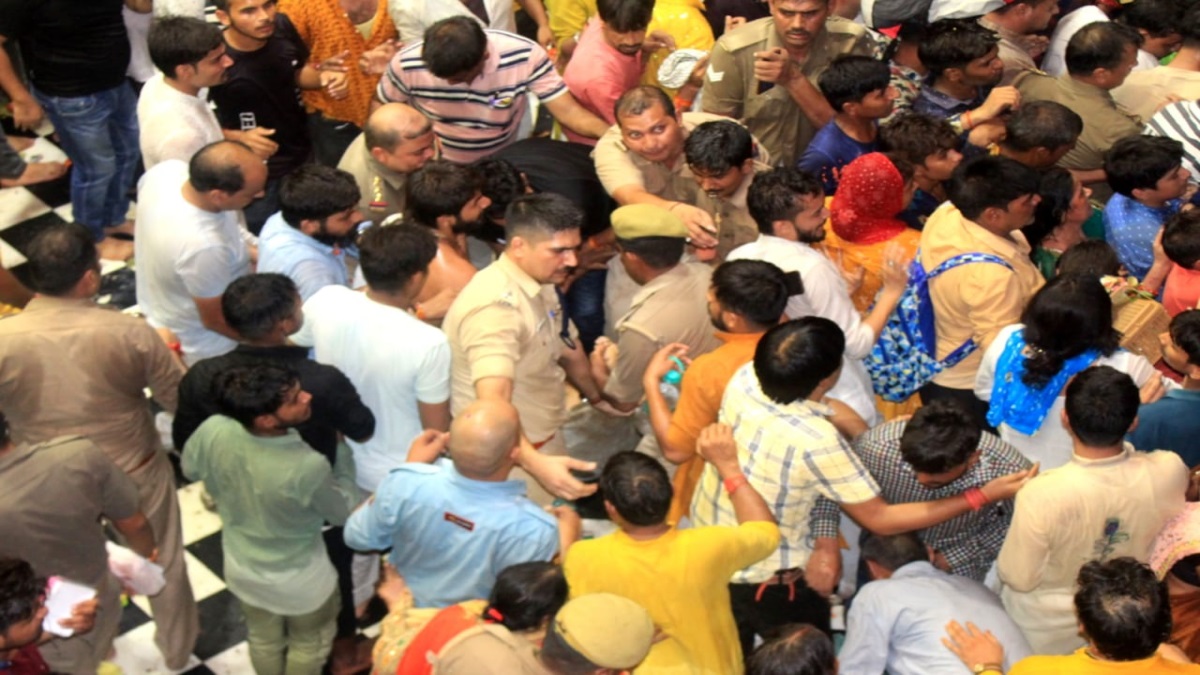 बिहारी जी मंदिर में भगदड़ के दौरान के हालात।