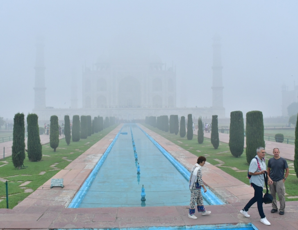 गुरुवार सुबह 8:00 बजे कोहरे की चादर में लिपटा ताज। जागरण