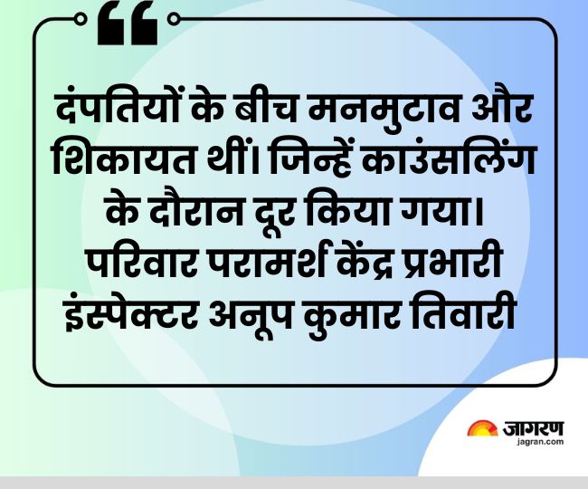 रविवार को परिवार परामर्श केंद्र में काउंसलर ने कई चरणों की काउंसलिंग के बाद सात जोड़ों में सुलह कराई। पतियों ने लिखकर दिया कि वह पत्नी का उत्पीड़न नहीं करेंगे। वहीं, पत्नी ने भी आश्वासन दिया कि वह अपना व्यवहार संयत रखेंगी। पति को बात-बात पर ताना नहीं देंगी।