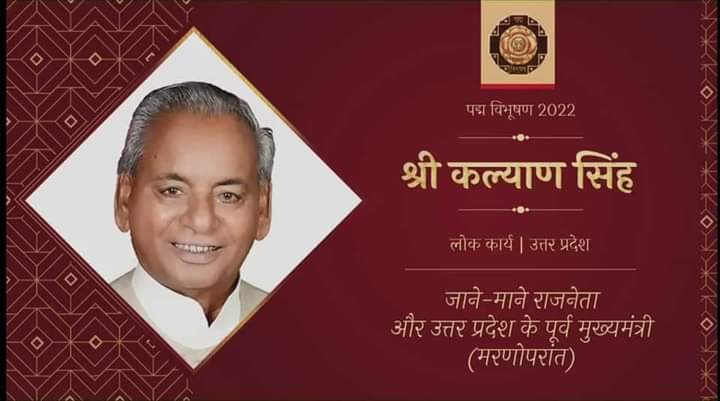 Padma Vibhushan to Kalyan Singhपूर्व मुख्यमंत्री कल्याण सिंह को मरणोपरांत दिए गए पद्म विभूषण सम्मान को ग्रहण करते समय एटा के सांसद राजवीर सिंह उर्फ राजू भैया के चेेेहरे पर खुशी थी। सबसे पहले सम्मान के लिए कल्याण सिंह का नाम बोला गया तो वे भावुक हो गए थे।