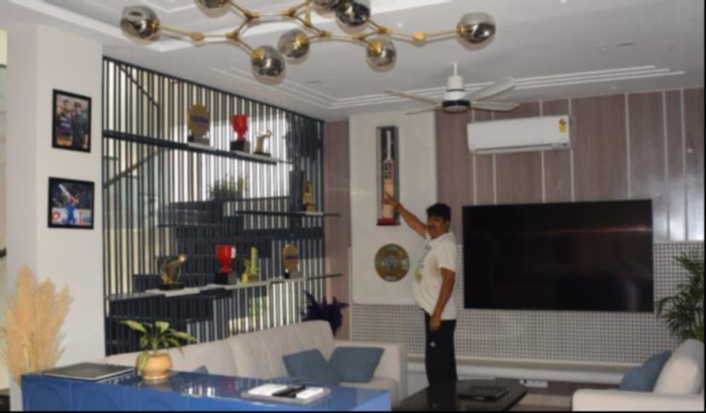 घर का इंटीरियर शहर में सर्वश्रेष्ठ माना जा रहा है। उन्होंने इस बल्ले से आइपीएल में गुजरात टाइटंस के विरुद्ध लगातार पांच छक्के जड़कर कोलकाता नाइटराइडर्स को जीत दिलाई थी। विला की गैलरी में उनको मिल चुकीं ट्राफी खेल की उत्कृष्टता का प्रमाण दे रही हैं।