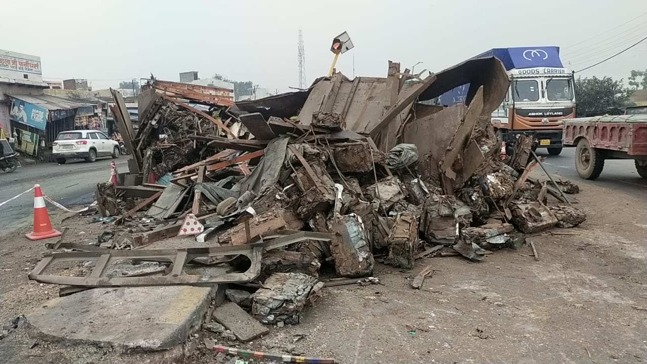 चूंकि टक्कर ट्रक के बीचों-बीच लगी थी, तो मलबा उछलकर सड़क पर बिखर रहा। इस ट्रक का पिछला हिस्सा चकनाचूर हो गया। धमाके की आवाज सुनकर आसपास के लोगों की भीड़ जुट गई। पुलिस ने जेसीबी मंगाकर मलबे को चौराहे पर ही इकट्ठा कराया।