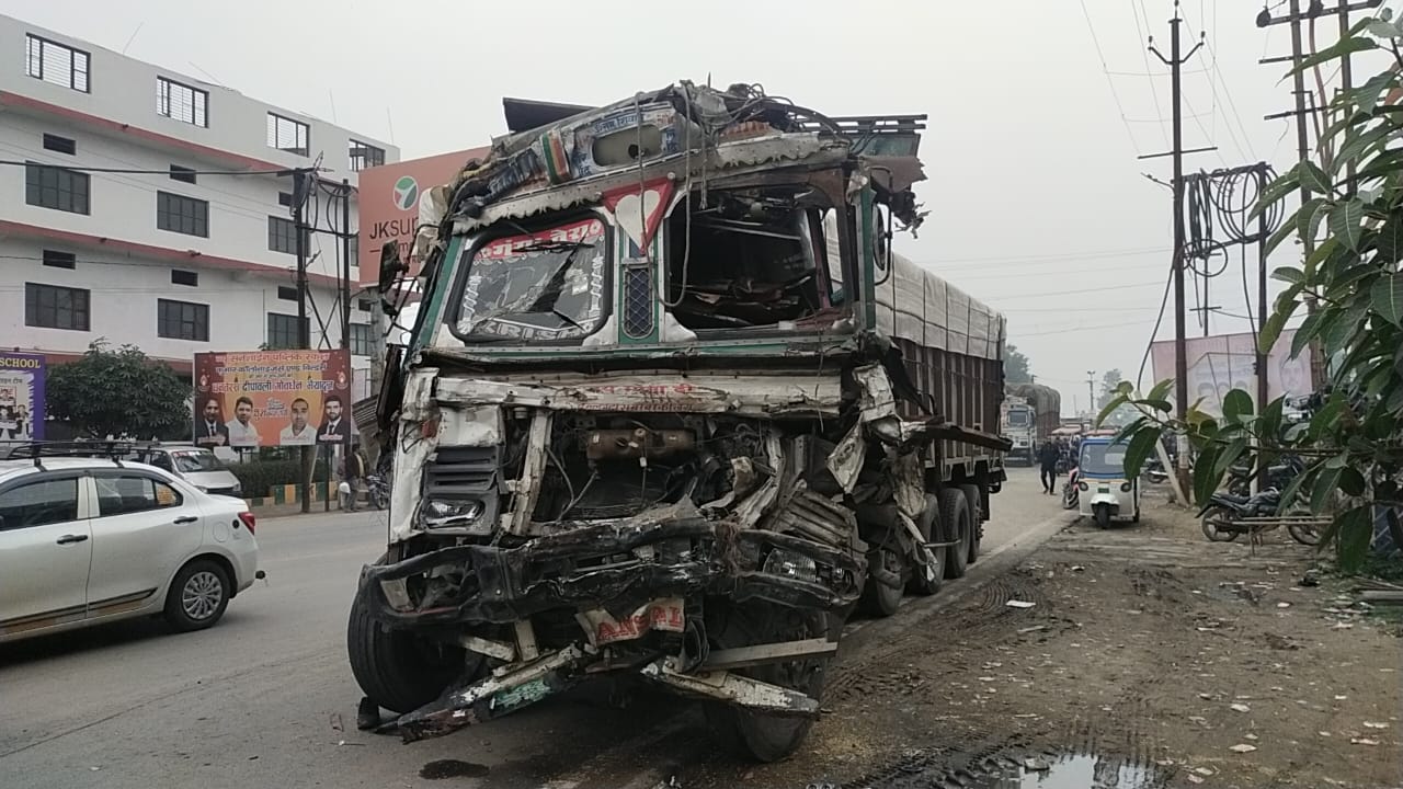 पंजाब के संगरूर जिले के गांव लड्डाकोठी के चालक गर्सेव सिंह परिचालक सतनाम के साथ गुवाहाटी से ट्रक में स्क्रैप लेकर पंजाब जा रहे थे। शनिवार सुबह पौने छह बजे खेरेश्वर चौराहा को पार करने के दौरान खैर की तरफ से आए तेज रफ्तार ट्रक ने जोरदार टक्कर मारी।