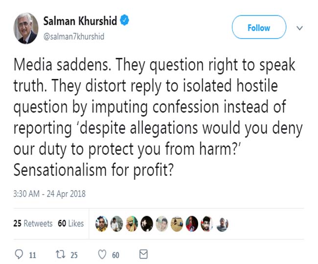 — Salman Khurshid (@salman7khurshid) April 24, 2018