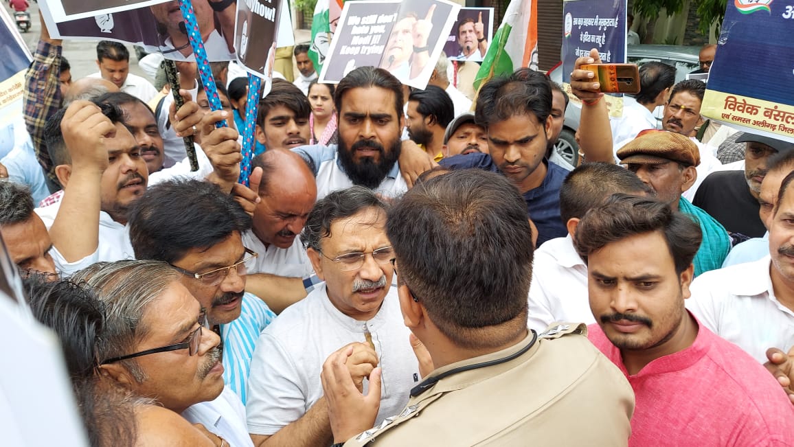 Breaking News: कांग्रेसियों के जुलूस को पुलिस ने रोका, पूर्व विधायक की सीओ से नोकझोंक, हंगामा